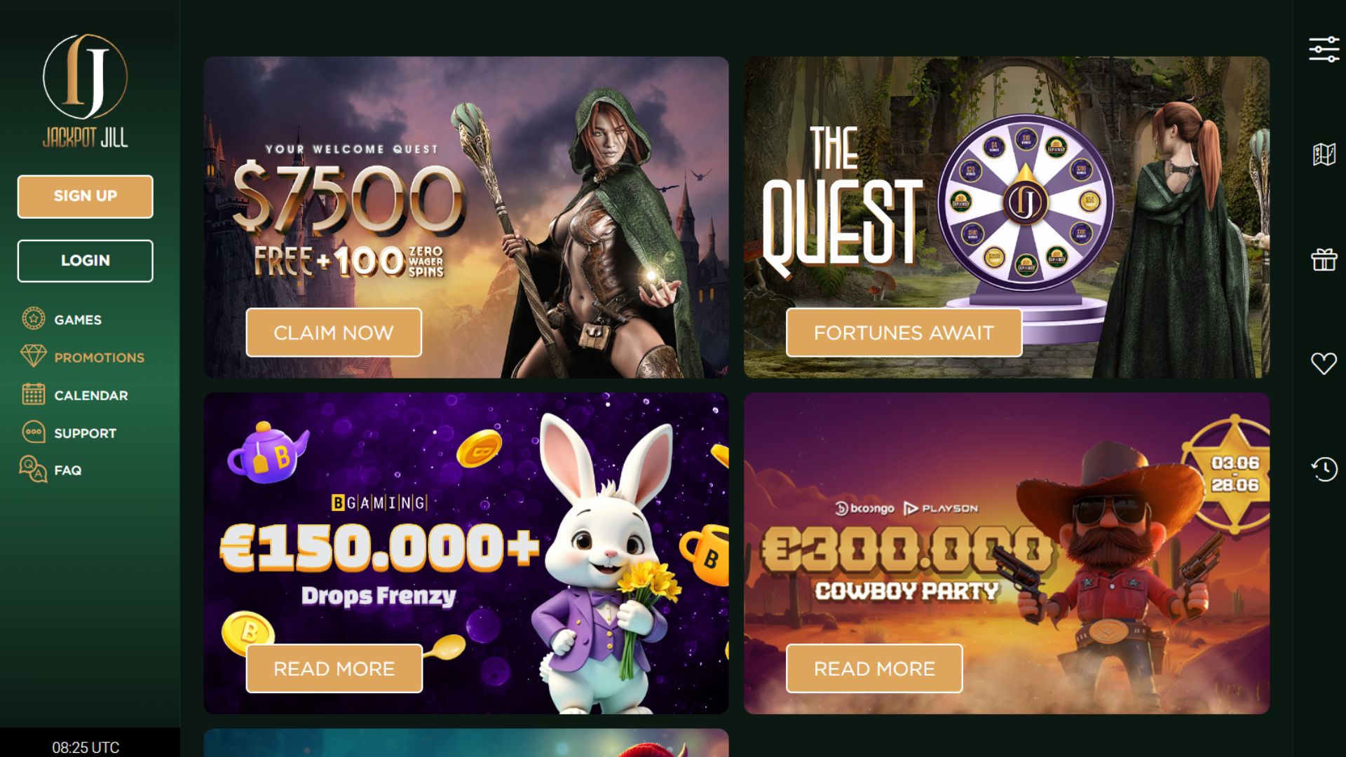 Jackpot Jill offers 24/7 customer support to assist with account setup, deposits, or any issues while playing. The well-organised FAQ section covers common questions, although it’s not super fleshed out and we’d love to see a more expansive selection of topics.