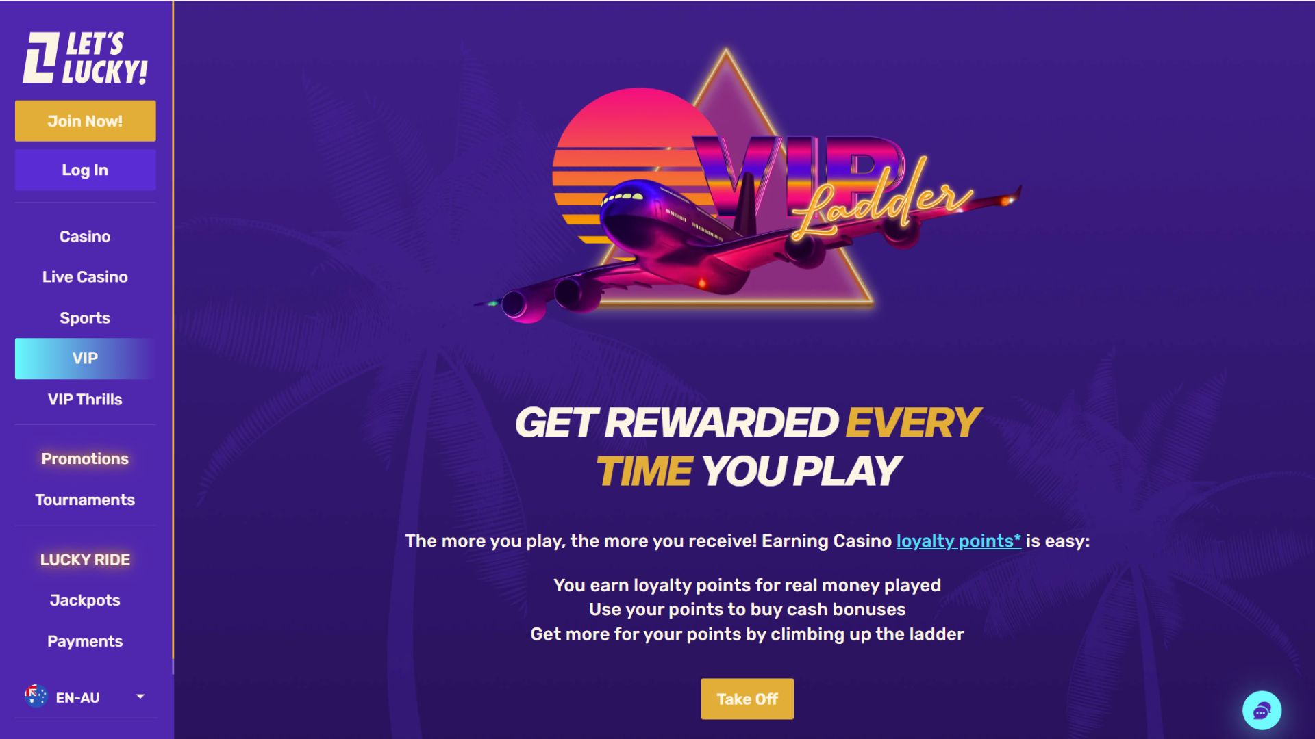 Let’s Lucky Casino has made sure that all of its players are rewarded for their loyalty. The more you play, the quicker you will gain loyalty points that help you move between different levels.